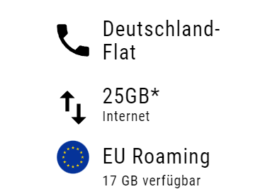 + Tarif All Net Easy – 25GB Internet + Flat Telefonieren aktiviert und nach erhalt 28 Tage inklusive.